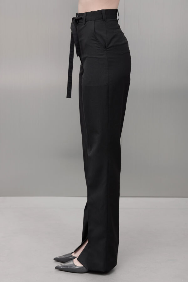 Pantaloni clasici cu şiret pe talie înaltă și șliț