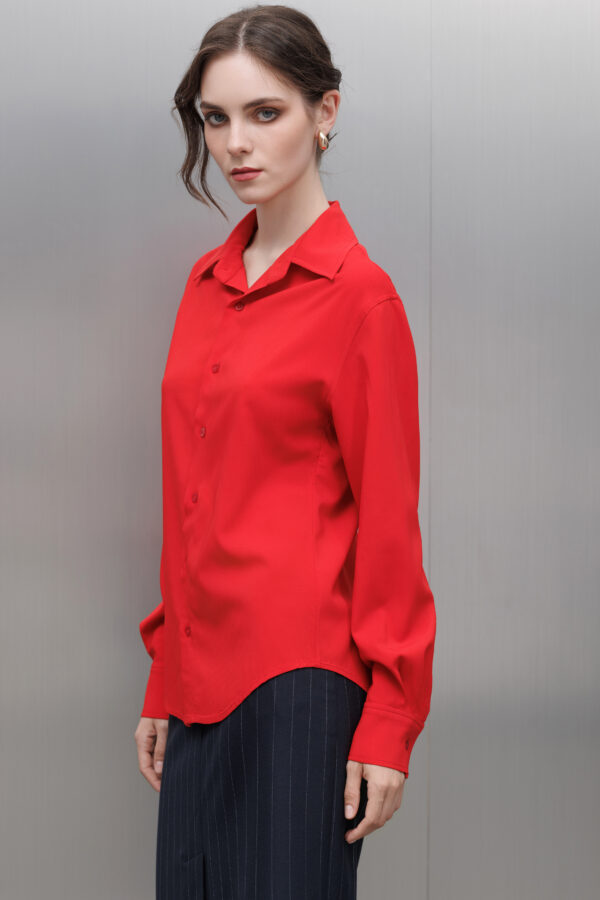 Cămașă “La Chute” trădează o inteligență arhitecturală flatantă. Este definiția eleganței cu intenții ascunse (cine a spus că sunt interzise?). Gulerul asimetric adaugă un detaliu sofisticat prin croială clean și design minimalist. Poart-o cu pantaloni high-waist sau fustă creion, pantofi cu toc și accesorii reprezentative.